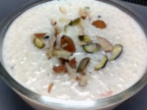 2 लीटर दूध, दो मुट्ठी बासमती चावल, पाव कटोरी बादाम-पिस्ता व काजू की कतरन, चार बड़े चम्मच शक्कर, आधा चम्मच पिसी इलायची और 3-4 लच्छे केसर।